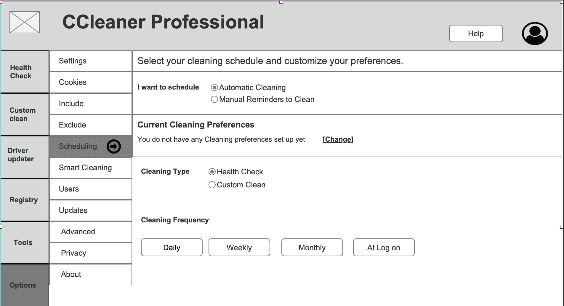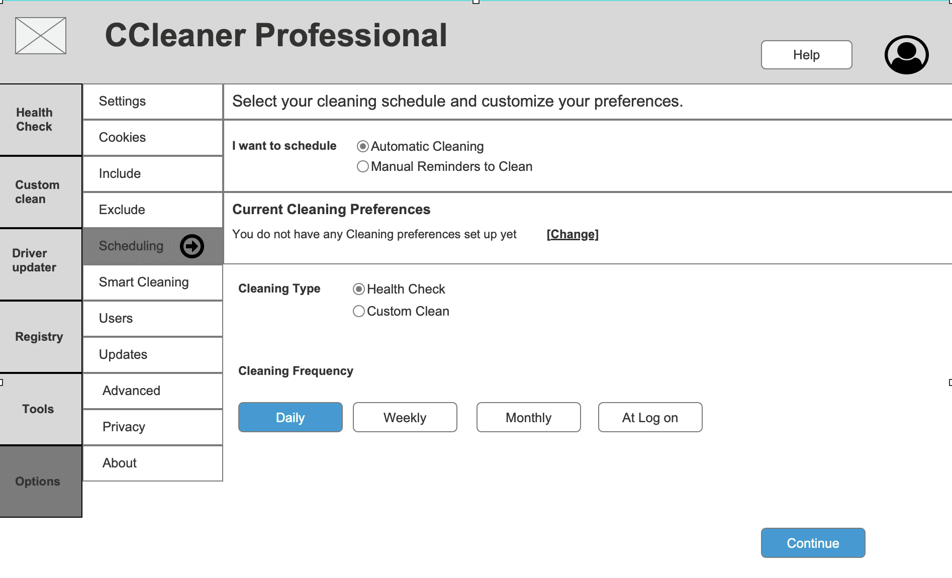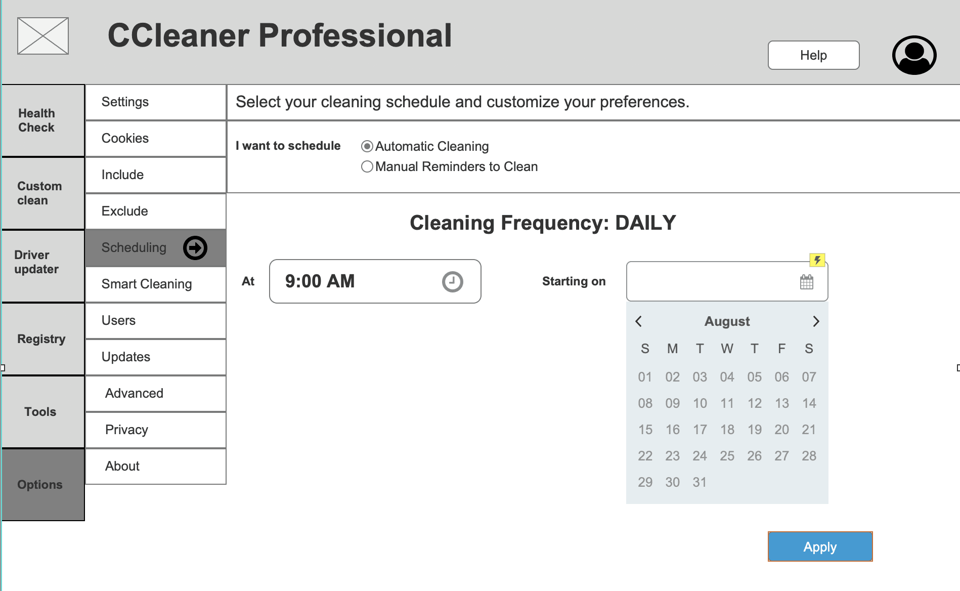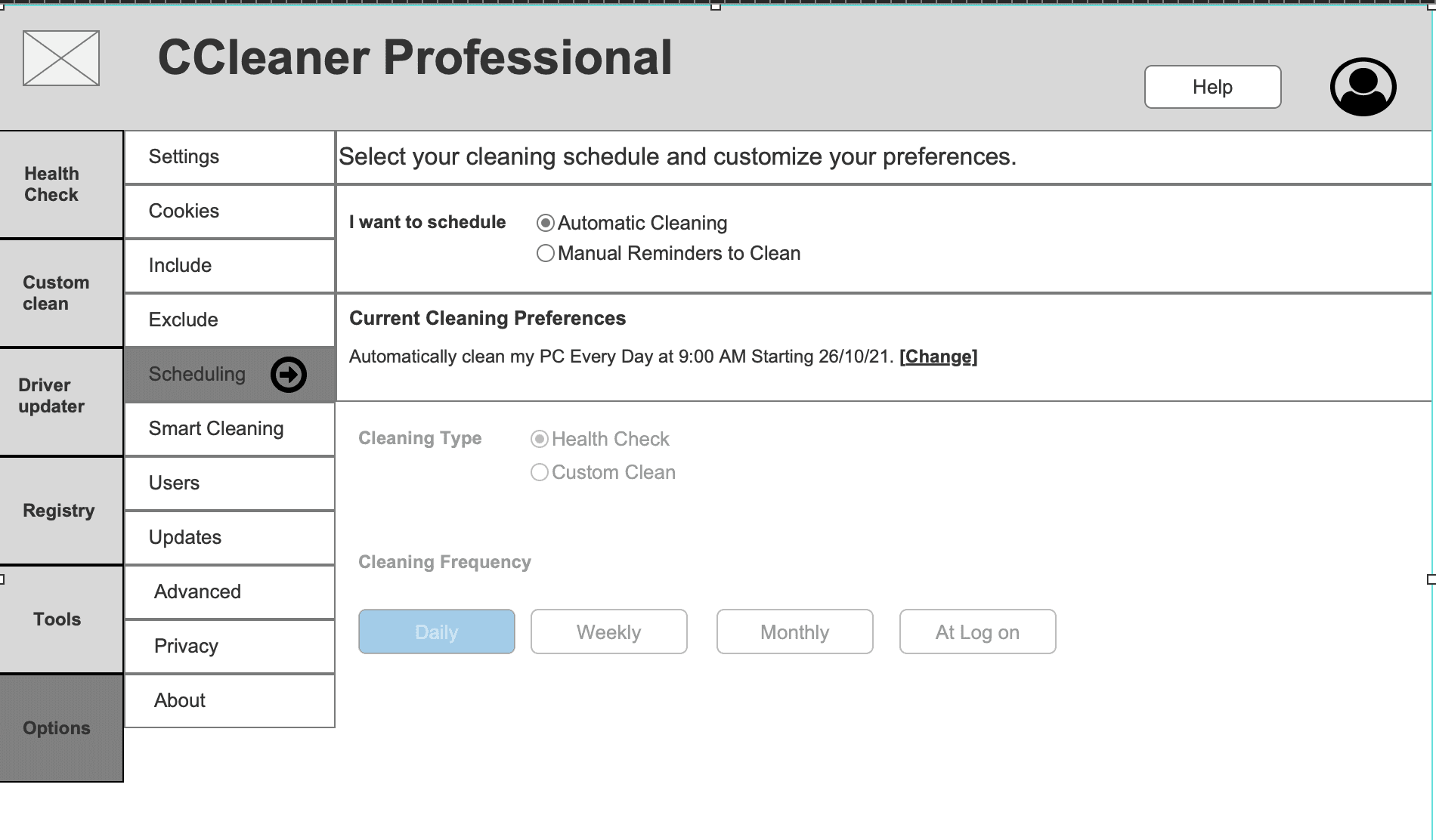 Setting a Daily Cleaning schedule (Axure Wireframe)