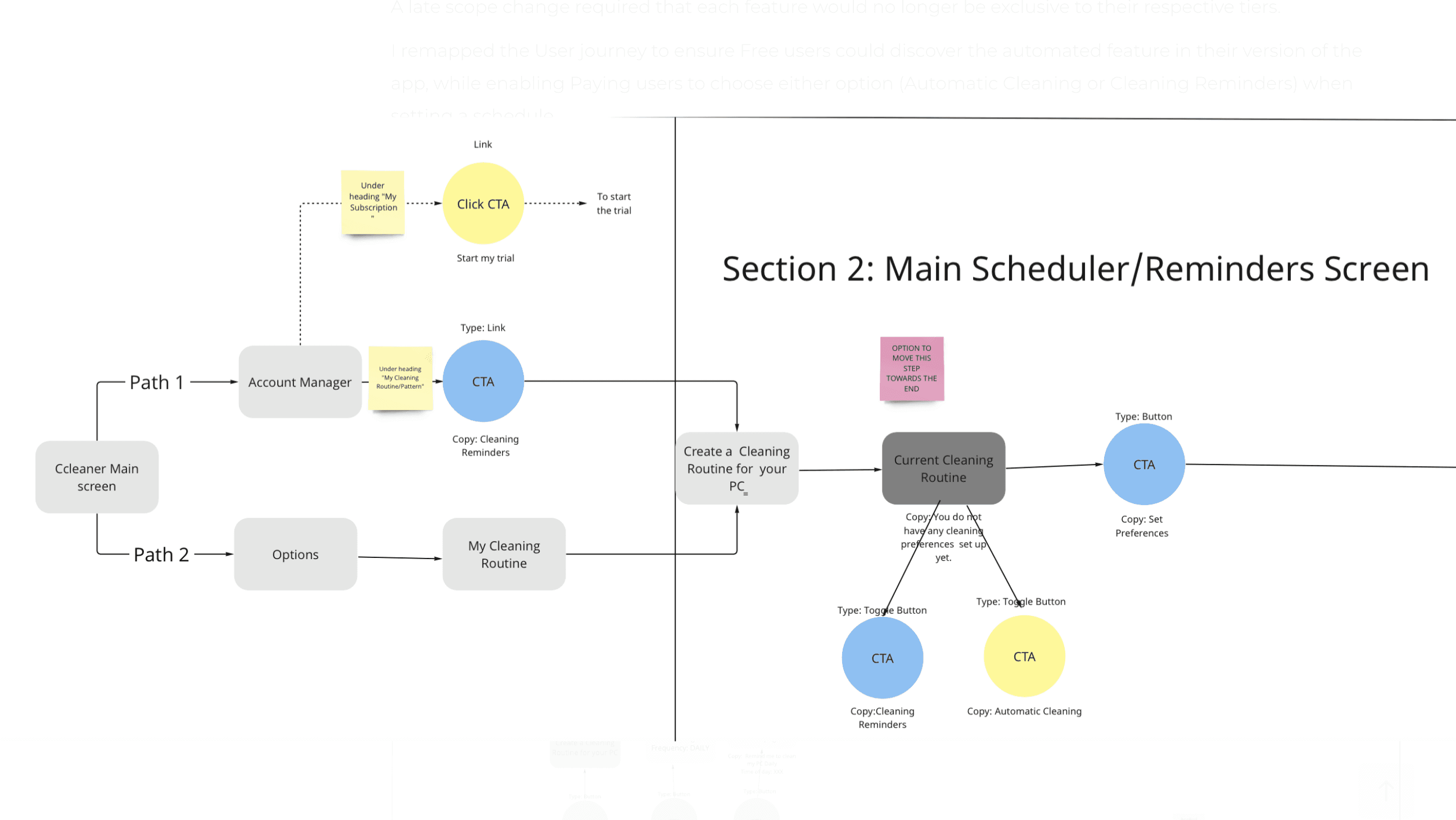 I then remapped the user journey to ensure Free users could discover Automated Cleaning, while Paying users had the flexibility to choose between Automatic Cleaning and Cleaning Reminders when scheduling.