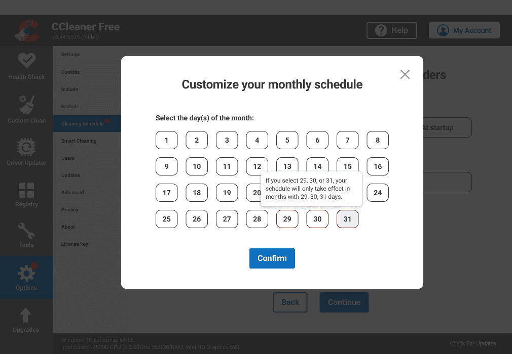 Added prompts to clarify that not all months include days 29, 30, or 31.