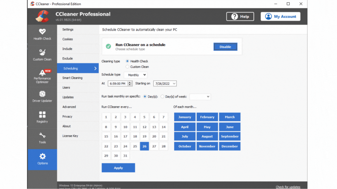 Setting a monthly schedule (before redesign)