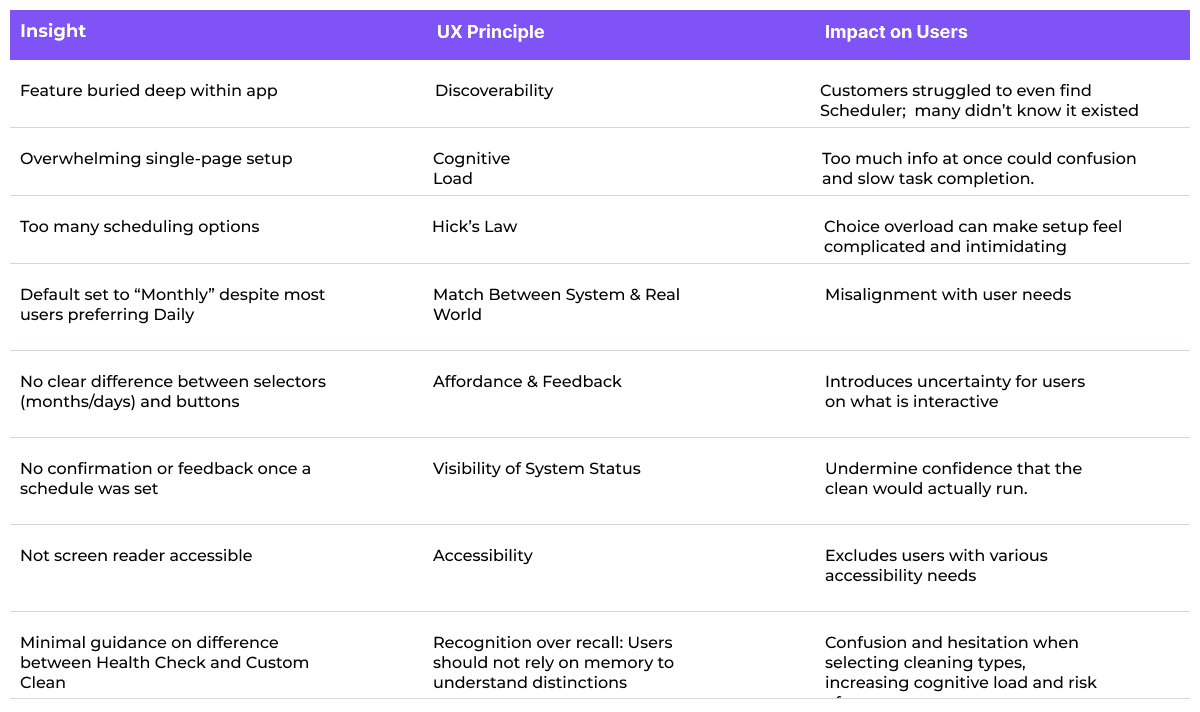 • No confirmation: users weren’t sure if their schedule had saved.