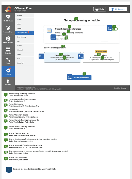 • Only 12% of participants could complete the steps needed to set up a cleaning schedule (in this case Daily).